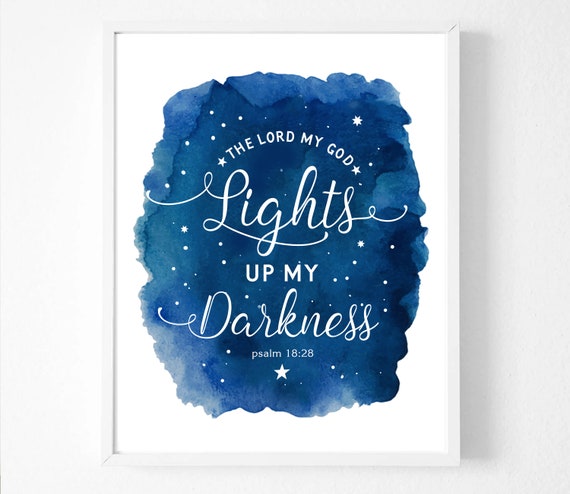 Psalm 18 28 Print Bible Verse The Lord My God Lights Up My Etsy